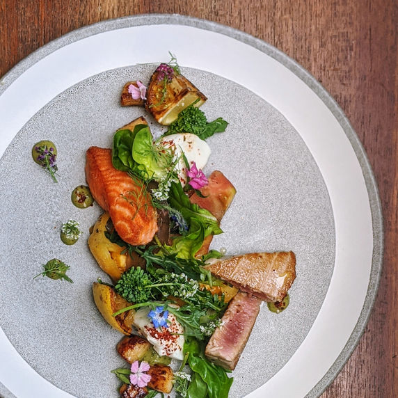 Basically everything you want in a salad. Rare tuna and the best salmon in the world. Seasonal gorgeous scallops from Nantucket